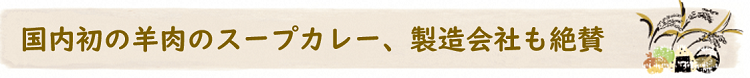 こうして平成18年に完成した羊の肉のスープカレー。羊の肉で作るスープカレーは、おそらく国内初。初めての商品は、委託していた製造会社にも「今まで、あちこちから委託されて作ってきたが、こんなに美味しいのは初めてだ」と絶賛される味に完成しました。